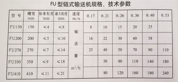 FU型鏈式輸送機規(guī)格: