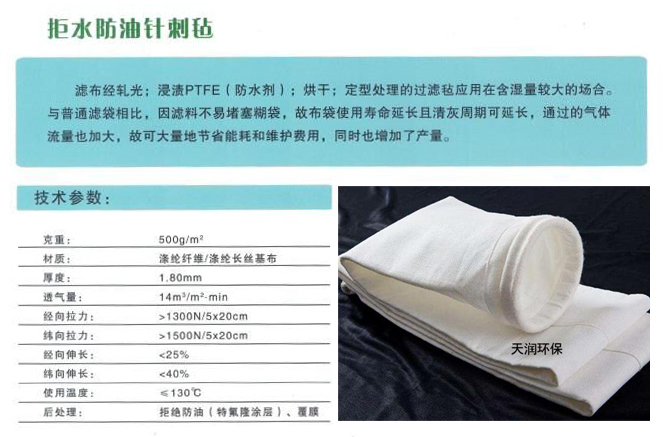 拒水防油針刺氈除塵器布袋【產(chǎn)品介紹】: