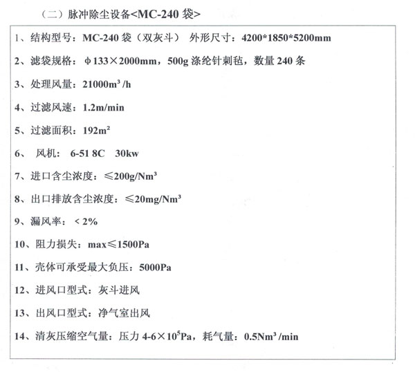 MC脈沖布袋除塵器的的基本結(jié)構(gòu):主要由五部分組成上箱體:由可掀起的蓋板和出風(fēng)口組成。中箱體:由多孔板、濾袋裝置和文氏管組成。下箱體:由進(jìn)風(fēng)口、灰斗和檢查門組成。排灰系統(tǒng):由減速裝置和輸灰、排灰裝置組成。噴吹系統(tǒng):由控制儀、控制閥、脈沖閥、噴吹管、氣包和防護(hù)裝置組成。
